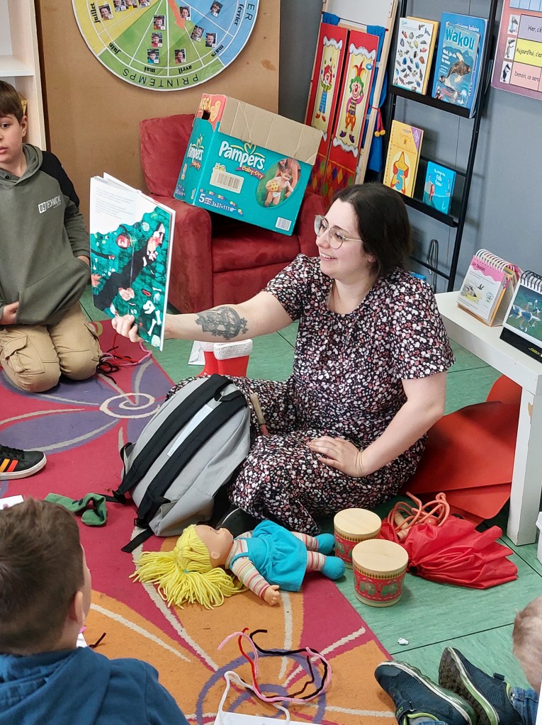 Aujourd’hui, Alexandra (bibliothèque de Barvaux) est venue faire une petite animation autour de la lecture du livre « Toute une montagne » écrit par Marie Colot et illustré par Françoise Rogier📖 🏔