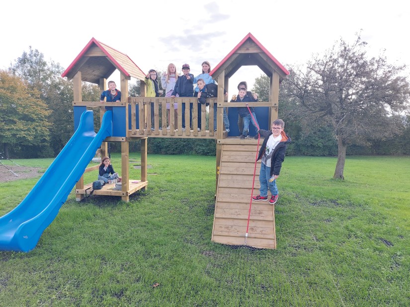 Balançoires, pyramide en filet, 2 modules avec toboggan, pont, mur d’escalade… viennent s’ajouter aux quelques jeux déjà présents. De quoi agrémenter nos beaux espaces verts et ainsi passer de beaux moments pendant les récréations !