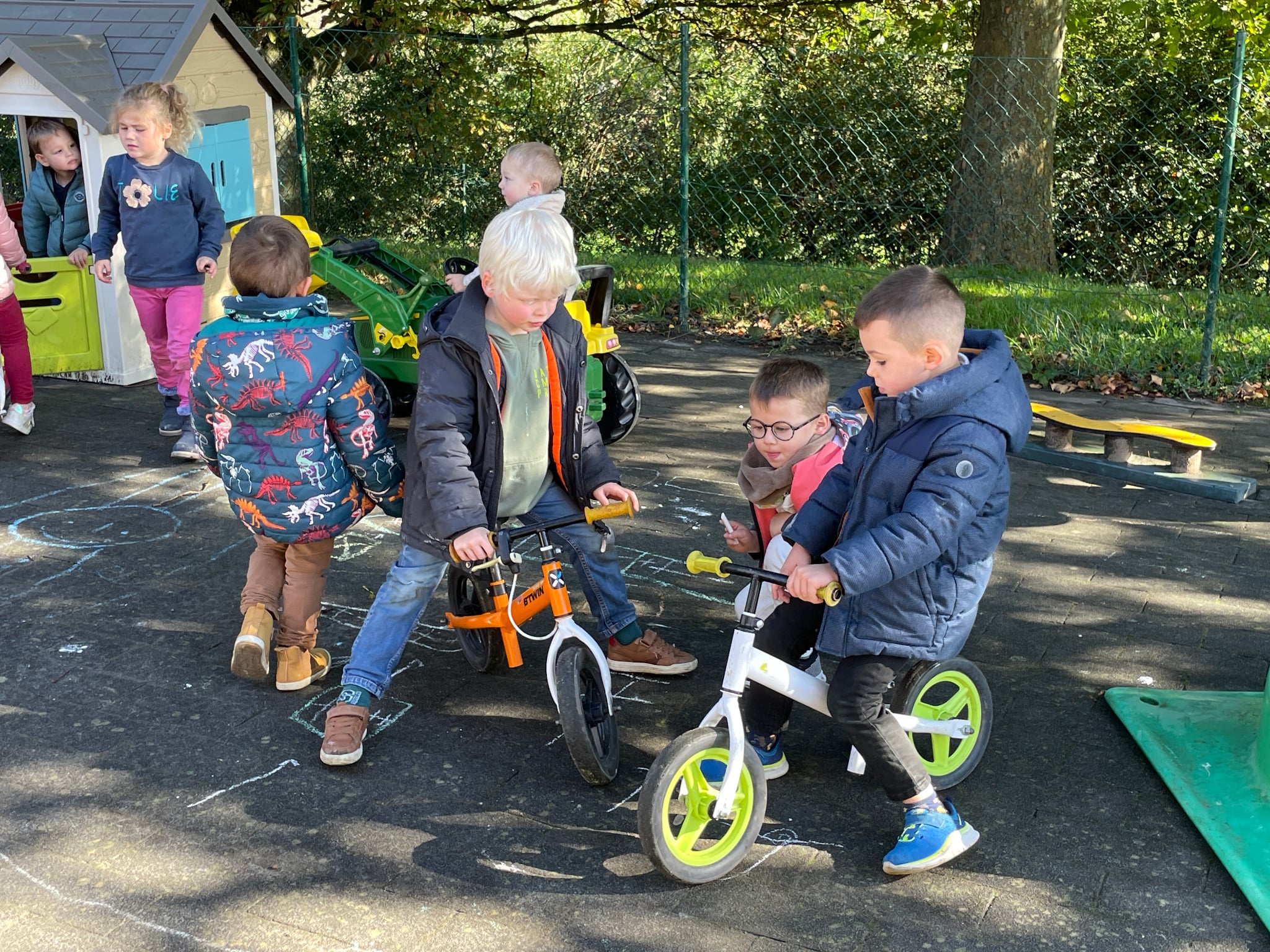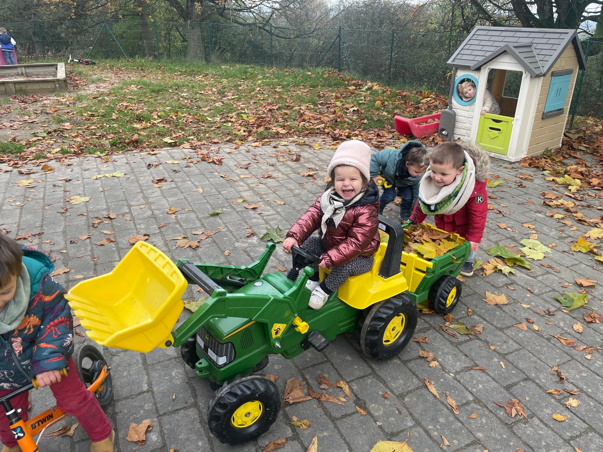 La cour des maternelles est elle aussi de plus en plus remplie grâce aux achats financés, entre autre, par la marche parrainnée de l’année passée : une maisonnette, des tables de pique-nique et de nouveaux véhicules. De quoi bien s’amuser !