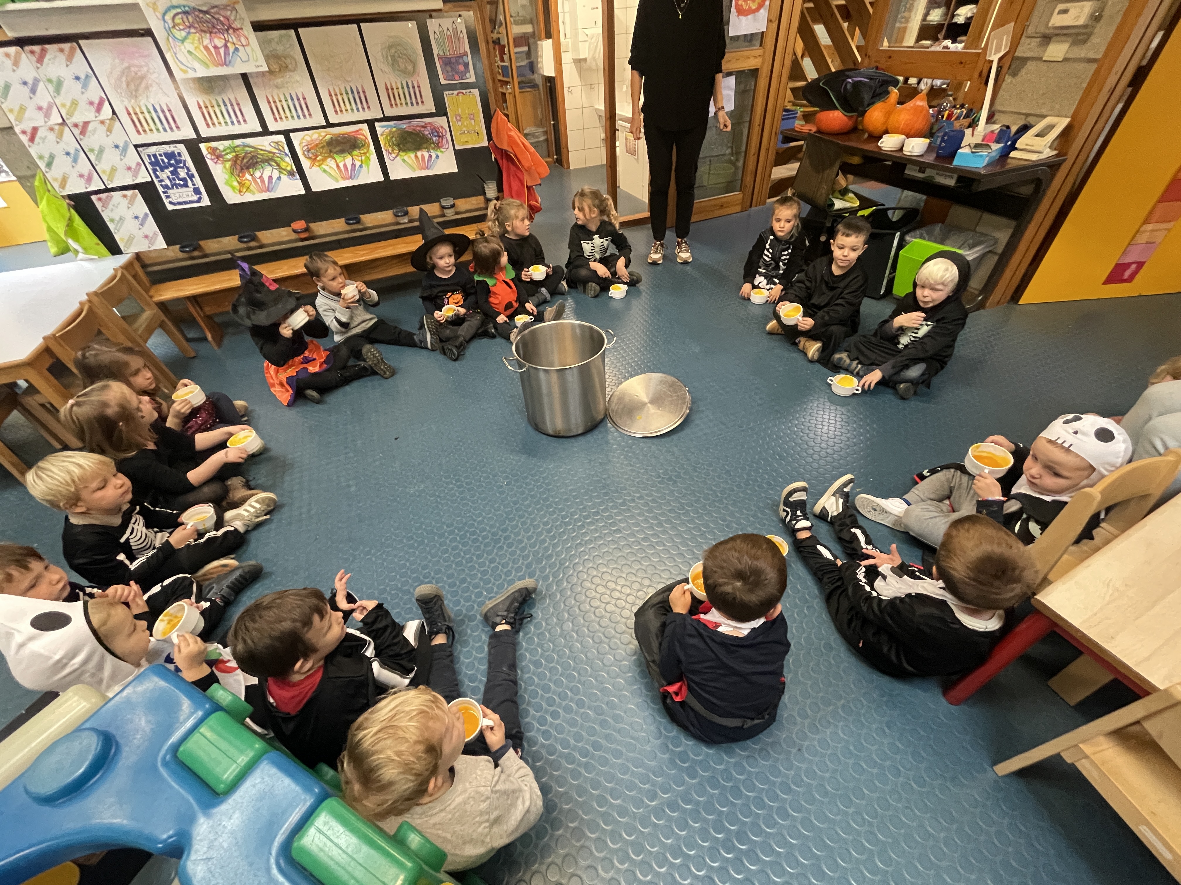 Outre le fait de passer la journée déguisés, les maternelles ont également réalisé une potion de sorcière 🥣 avec les potirons provenant des jardins de plusieurs familles.